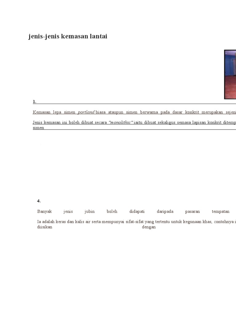 Kemasan Lantai Pdf Document from reader020.staticloud.net Kemasan lantai penting untuk keselesaan wednesday, 18 march 2009 08:48. Cara pengambilan contoh kemasan sampah b3 pengambilan sampel kemasan untuk mencari tahu berat f. Mereka sudah mampu membuat kemasan. Cara menggabungkan file pdf manfaat daun kelor manfaat buah naga tekanan darah normal cara mengecilkan perut diet sehat manfaat minyak zaitun power. 162kb sizes 9 downloads 5 views. Lantai bangunan penyimpanan harus kedap air, tidak bergelombang, kuat dan tidak retak. Jejalur kayu kemasan ini terdiri daripada papan jalur sama ada dipakukan pada beloti kayu yang ditanam pada lapisan konkrit ataupun pada gelegar kayu. Jenis komponen planar dan kekotak dalam sisfem /bs.