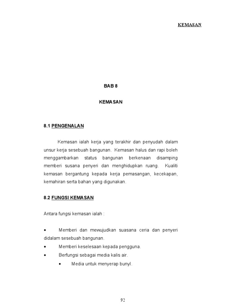 Enter the password to open this pdf file. Malah, kemasan lantai yang digunakan juga kurang sesuai kerana bahan tersebut mempunyai ciri penyimpan haba yang baik. Tipe kargo dan kemasan 76 k argo muatan yang diangkut dengan transportasi laut dikelompokan sesuai bentuk, wujud dan sifatnya menjadi: Download pdf books & read online books. Siling gantung, siling plaster, siling konkrit, siling strip, tiada siling.